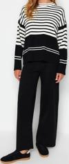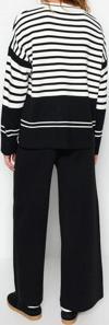 Moda Çizgili Bisiklet Yaka Düşük Kol Casual Günlük Taş Geniş Kalıp Triko Alt-Üst Takım ürünümüz, hem şıklığı hem de rahatlığı bir arada sunar.