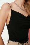 Moda Degaje Yaka Örme Slim Düz Desen Casual Günlük Regular Askılı Kol Bluz ürünümüz, hem şıklığı hem de rahatlığı bir arada sunar