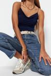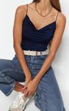 Moda Degaje Yaka Örme Slim Düz Desen Casual Günlük Regular Askılı Kol Bluz ürünümüz, hem şıklığı hem de rahatlığı bir arada sunar