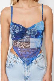 Moda Degaje Yaka Örme Slim Geometrik Desen Casual Günlük Crop Askılı Kol Bluz ürünümüz, hem şıklığı hem de rahatlığı bir arada sunar