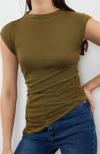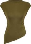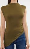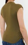 Ürün Özellikleri şu şekildedir: Desen:Düz | Yaka Tipi:Dik Yaka | Kol Tipi:Ay Kol | Kalıp:Slim | Kumaş Tipi:Örme | Renk:Haki | Cep:Cepsiz | Ürün Detayı:Büzgü / Drape | Ürün Tipi:Düz | Boy:Regular | Kol Boyu:Kısa | Ortam:Casual/Günlük | Siluet:Basic | Dokuma Tipi:Viskon Süprem | Persona:Cool & Comfort | Sürdürülebilirlik Detayı:Hayır | Materyal Bileşeni:96% Viskoz, ,4% Elastan | Yıkama Talimatı:T02 | Yaş:Tüm Yaş Grupları |