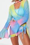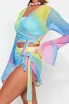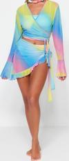 Ersefa Moda Dokuma Degrade V Yaka Plaj Degrade Desenli Vücuda Oturan Örme Bağlamalı Mesh Bluz Etek Takım