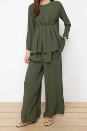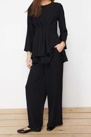 Moda Dokuma Düz Casual Günlük Siyah Büzgülü Aerobin Tunik Pantolon Dokuma Alt Üst Takım ürünümüz, hem şıklığı hem de rahatlığı bir arada sunar.
