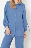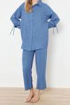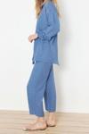 Kadın Pliseli Beli Lastikli Pantolon Tunik Gömlek Ikili Bürümcük Salaş Takım 3573330 - Image 1