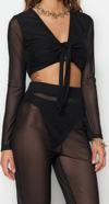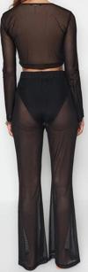 Moda Dokuma Geometrik V Yaka Plaj Siyah Örme Bağlamalı Mesh Bluz Pantolon Takım ürünümüz, hem şıklığı hem de rahatlığı bir arada sunar.