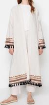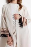 Ersefa Moda Dokuma Rahat Kalıp Uzun Kruvaze Düşük Kol Keten görünümlü Kruvaze Tesettür Giyim Kimono Kaftan