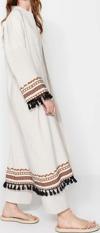 Moda Dokuma Rahat Kalıp Uzun Kruvaze Düşük Kol Keten görünümlü Kruvaze Tesettür Giyim Kimono Kaftan ürünümüz, hem şıklığı hem de rahatlığı bir arada sunar.