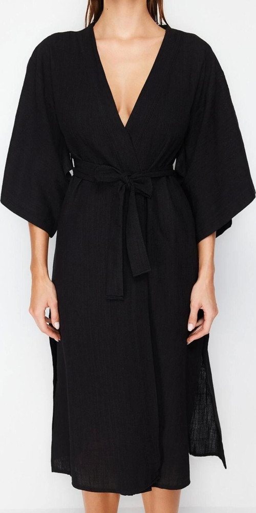 Moda Dokuma Regular Kalıp Midi V Yaka İspanyol Kol Keten görünümlü Basic Düz Desen Kimono Kaftan ürünümüz, hem şıklığı hem de rahatlığı bir arada sunar.