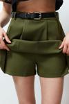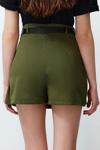 Moda Dokuma Yüksek Bel Geniş Paça Gündelik Haki Kemerli Dokuma Şortürünümüz, hem şıklığı hem de rahatlığı bir arada sunar.
