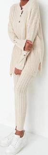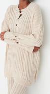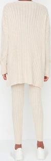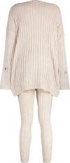 Moda Düz Bisiklet Yaka Düşük Kol Casual Günlük Fitilli Pantolonlu Triko Alt-Üst Takım ürünümüz, hem şıklığı hem de rahatlığı bir arada sunar.