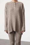 Moda Düz Bisiklet Yaka Düşük Kol Casual Günlük Fitilli Pantolonlu Triko Alt-Üst Takım ürünümüz, hem şıklığı hem de rahatlığı bir arada sunar.