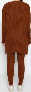 Moda Düz Bisiklet Yaka Düşük Kol Casual Günlük Fitilli Pantolonlu Triko Alt-Üst Takım ürünümüz, hem şıklığı hem de rahatlığı bir arada sunar.