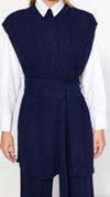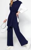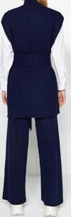 Moda Düz Dik Yaka Casual Günlük Kuşaklı Pirinç Örgü Süveter-Pantolon Triko Alt-Üst Takım ürünümüz, hem şıklığı hem de rahatlığı bir arada sunar.