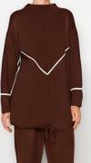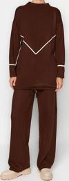 Moda Düz Dik Yaka Düşük Kol Casual Günlük Bağlama Detaylı Çizgili Triko Alt-Üst Takım ürünümüz, hem şıklığı hem de rahatlığı bir arada sunar.