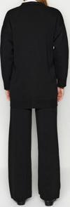 Moda Düz V Yaka Düşük Kol Casual Günlük Siyah Düğmeli Hırka-Pantolon Triko Alt-Üst Takım ürünümüz, hem şıklığı hem de rahatlığı bir arada sunar.