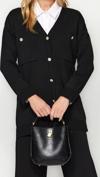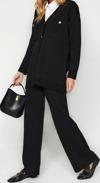 Moda Düz V Yaka Düşük Kol Casual Günlük Siyah Düğmeli Hırka-Pantolon Triko Alt-Üst Takım
