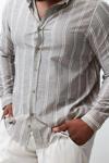 Ersefa Moda Erkek Büyük Beden Düğmeli Yaka Çizgili Günlük Regular Fit Rahat Kolay Ütülenebilir Gömlek