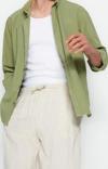 Ersefa Moda Erkek Gömlek Yaka Düz Desen Günlük Mavi Unisex Regular Fit %100 Pamuk Keten Görünümlü Gömlek