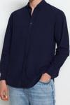 Ersefa Moda Erkek Gömlek Yaka Düz Desen Günlük Mavi Unisex Regular Fit %100 Pamuk Keten Görünümlü Gömlek