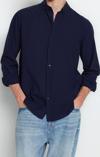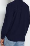 Ersefa Moda Erkek Gömlek Yaka Düz Desen Günlük Mavi Unisex Regular Fit %100 Pamuk Keten Görünümlü Gömlek