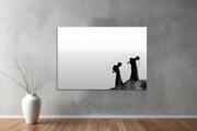tablolarımızı ek olarak alacağınız çift taraflı bantlar yardımıyla ya da arkasındaki tahta çıkıntı kısmını çivilerin üzerine yerleştirerek duvarlarınıza asabilirsiniz.