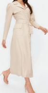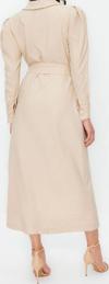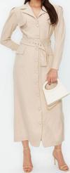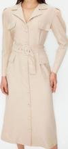 Ersefa Moda Fit Business Keten Görünümlü Dokuma V Yaka Uzun Kol Gömlek Elbise Maxi Boy Tesettür Elbise