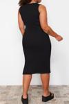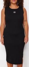 Ersefa Moda Fit Casual Günlük Kaşkorse Örme Halter Yaka Kolsuz Kol Shift Midi Boy Büyük Beden Elbise