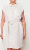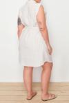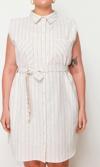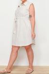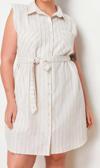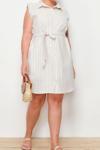 Ersefa Moda Fit Casual Günlük KetenDokuma Gömlek Yaka Kolsuz Kol Gömlek Elbise Midi Boy Büyük Beden Elbise