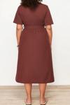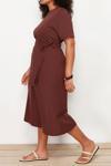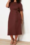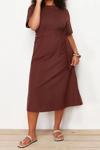Ersefa Moda Fit Casual Günlük Süprem Dokuma Bisiklet Yaka Kısa Kol A-Line Midi Boy Büyük Beden Elbise