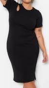 Ersefa Moda Fit Gündüz Gece Kaşkorse Örme Bisiklet Yaka Kısa Kol Bodycone Midi Boy Büyük Beden Elbise
