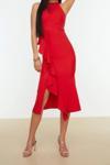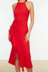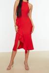 Ersefa Moda Fit Mezuniyet Balo Finike Dokuma Halter Yaka Kolsuz Kol Anvelop Midi Boy Elbise