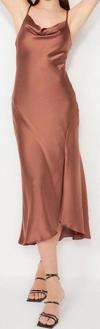 Moda Fit Mezuniyet Balo Saten Dokuma Degaje Yaka Askılı Kol Shift Midi Boy Elbise ile zahmetsiz stil keşfedin.