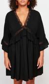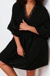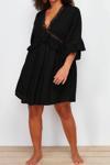 Ersefa Moda Fit Plaj Günlük Crinkle Dokuma V Yaka Truvakar Kol Kol Basic Mini Boy Büyük Beden Elbise