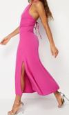 Modatalika Boyundan Bağlamalı Önü Yırtmaçlı Midi Boy Elbise - Image 1