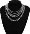 Moda Gümüş Renk Çok Katmanlı Kolye Punk Trendy gerdanlık kolye