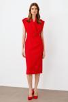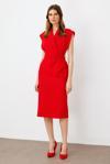 Detay: Akıcı ve kaliteli kumaşıyla zarafeti hissettiren şık ve modern midi boy elbise, detaylarıyla göz kamaştırıyor. Kol ağzındaki zarif boncuk aksesuarlarla şıklık kazanan tasarım, derin ve dökümlü kruvaze yakasıyla feminen bir duruş sunuyor. Boncuk işlemeli kemer detayı, beli vurgulayarak siluetinizi kusursuz bir şekilde tamamlıyor. Vücudu saran midi boy kesimi sayesinde hem özel davetlerde hem de günlük kullanımda zarif bir görünüm elde etmenizi sağlayan bu elbise, stilinizi üst seviyeye taşıyacak;