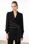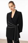 Detay: Kolları piliseli ve şerit aksesuar detaylarıyla tasarlanan bu ceket, klasik çizgilere modern bir dokunuş katıyor. Pilise detaylar hareketli bir siluet sunarken, şerit aksesuarlar cekete dinamik ve özgün bir hava kazandırır. Hem günlük kombinlerde hem de özel davetlerde rahatlıkla kullanılabilecek bu parça, stil sahibi görünüm arayanlar için ideal bir tercihtir;