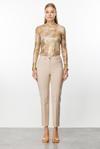 Detay: Bu model, günlük şıklığı ve konforu bir araya getiren mükemmel bir pantolon seçeneğidir. Yüksek bel tasarımı sayesinde bel hattını toparlarken, dar paça kesimiyle modern ve zarif bir siluet oluşturur. Hafif likralı kumaşı, gün boyu rahat hareket etmenizi sağlarken, formunu koruyan yapısı uzun süre kullanım imkanı sunar. Ön kısmındaki zarif köşe cepler, klasik tasarıma sofistike bir dokunuş katarken, özel dikiş çizgileri bacak boyunu olduğundan daha uzun göstererek estetik bir görünüm kazandırır. Şehir yaşamına ve iş kombinlerine kolayca uyum sağlayan bu model, hem sade hem de güçlü bir stil arayanlar için ideal bir tercihtir. Eğer tarzınıza uygun kombinler oluşturmak istiyorsanız, bu modeli farklı parçalarla tamamlayarak kendinize özgü bir stil yaratabilirsiniz;