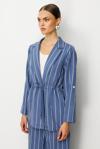 Kadın Mono Yaka Safari Kol Beli Tünel Bağcıklı İçi Bluzlu İkili Tunik 5020 Indigo