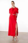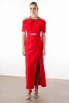 Detay: Vücuda uyum sağlayan, akıcı ve şık kumaşıyla öne çıkan uzun şık elbise, elegan ve sofistike tasarımıyla zarafeti yansıtıyor. Açık omuz detayıyla modern bir dokunuş sunan bu elbise, ışıltılı taş işleme detaylarıyla süslenmiş şık yakasıyla göz kamaştırıyor. Taş işlemeli aksesuar detaylı kemer, beli vurgulayarak feminen bir duruş sağlarken; ön yırtmaç detayı ise hem hareket kolaylığı hem de çekici bir görünüm kazandırıyor. Özel anlarınızda tarzınızı bir üst seviyeye taşıyacak bu elbise, unutulmaz bir şıklık sunuyor;