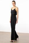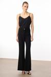 Detay: Yanları şerit Swaroski taş detaylarıyla süslenmiş bu pantolon modeli, şıklığı ve zarafeti bir araya getiriyor. Işıltılı taş şeritler, sade tasarıma sofistike bir dokunuş katarken; modern kesimiyle hem özel davetlerde hem de stil sahibi günlük kombinlerde öne çıkıyor. Bu pantolon, göz alıcı detaylarıyla gece şıklığının vazgeçilmez parçası olmaya aday;