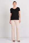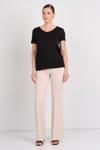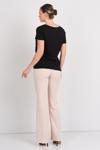 Detay: Nevrüllü, İspanyol paça, yüksek bel ve cepsiz tasarımıyla öne çıkan bu model pantolon; zarif çizgileriyle hem klasik hem modern bir görünüm sunar. Yüksek bel kesimi sayesinde vücut hatlarını dengeli bir şekilde ortaya çıkarırken, İspanyol paça formu bacak boyunu optik olarak uzatarak silueti daha uzun ve ince gösterir. Cepsiz yapısı pantolona sade ve şık bir hava katarken, nevrüllü detaylar ise tasarıma sofistike bir dokunuş ekler. Bu model pantolon, özellikle düz kesim bluzlar veya kısa üstlerle kombinlendiğinde güçlü bir stil ifadesi yaratır;