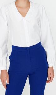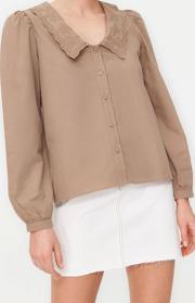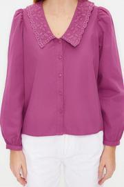 Ersefa Moda Kadın Bebe Yaka Günlük Yakası İşlemeli Nakış Detaylı Regular Normal Kalıp Pamuklu Dokuma Gömlek