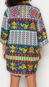 Ersefa Moda Kadın Büyük Beden Gömlek Yaka Etnik Desen Plaj Giyim Etnik Desenli Dokuma Plaj Giyim Gömlek