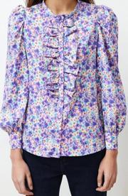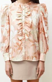 Ersefa Moda Kadın Dik Yaka Günlük Çiçek Desenli Fırfırlı Şifon Kumaş Regular Normal Kalıp Dokuma Gömlek