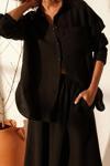Kabarık Kol Desenli Gömlek - Siyah - Image 1