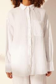 Ersefa Moda Kadın Gömlek Yaka Düz Desen Günlük %100 Keten Oversize Gömlek