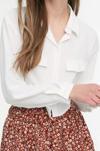 Ersefa Moda Kadın Gömlek Yaka Düz Desen Günlük Cep Detaylı Crop Aerobin Regular Normal Kalıp Dokuma Gömlek
