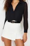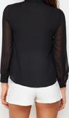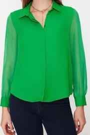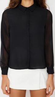 Ersefa Moda Kadın Gömlek Yaka Düz Desen Günlük Kolları Transparan Regular Normal Kalıp Dokuma Gömlek