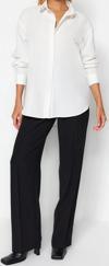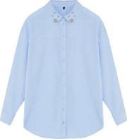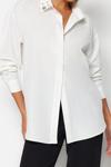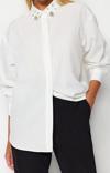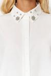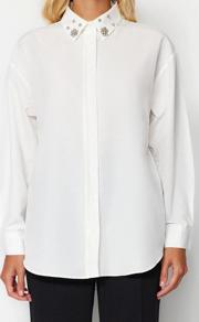 Ersefa Moda Kadın Gömlek Yaka Düz Desen Günlük Yakası Taş Detaylı Oversize Geniş Kalıp Dokuma Gömlek